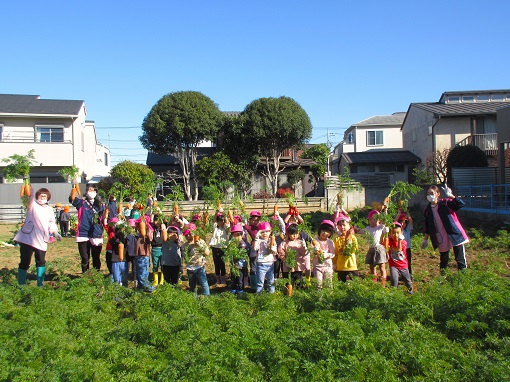 1月のおたより 2024.01.26 (金) 冬を感じながら寒さに元気に走り回っている子どもたち。 今年度も残りわずかですが、体調管理に気を付け、毎日を大切に元気に過ごしたいと思います。 サンタさん サンタさん プレゼントありがとう だいこん掘り 松組(5歳児) にんじん堀り 竹組(4歳児) うんとこしょ!どっこいしょ! 大きなダイコンとにんじんがとれたよ カテゴリ:おたより 第一保育園 /blog/blog_comments/captcha /blog/blog_comments/get_token